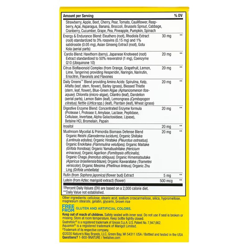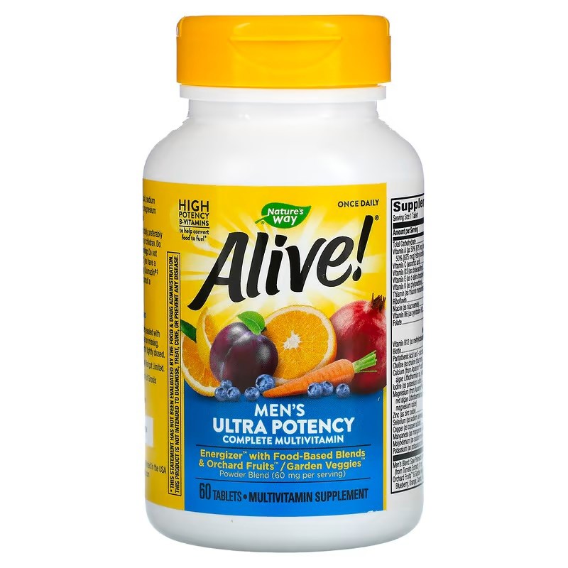 Комплексные мультивитамины Alive! с разнообразными питательными веществами на основе смесей экстрактов продуктов: