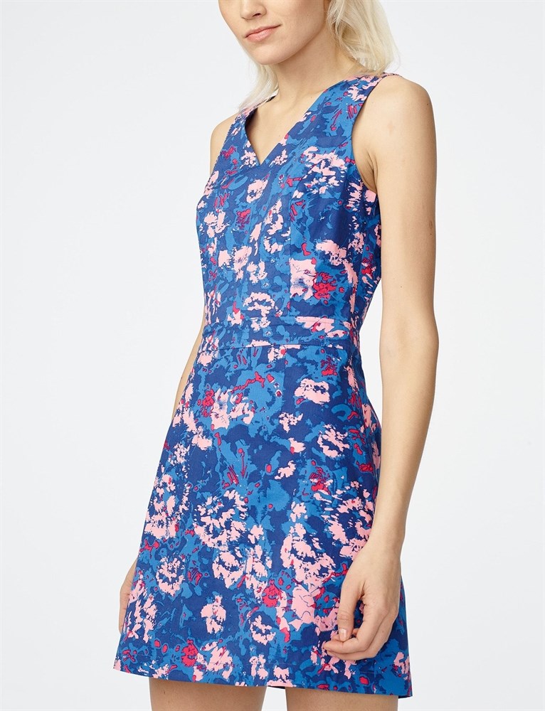 Платье Armani Exchange выполнено из хлопка с добавлением спандекса. Детали:цветочный принт, V-образный вырез,