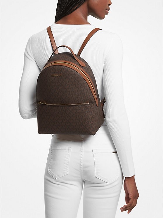 Рюкзак Michael Kors Adina среднего размера выполнен из канваса, искусственной кожи и текстиля.